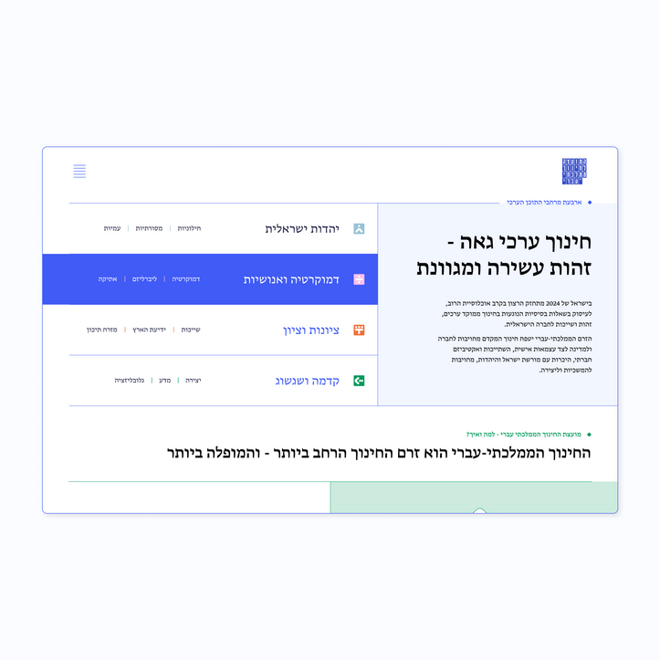 As part of a comprehensive branding process for the council, the website was designed to accompany its official launch, serving as both a foundational branding platform and an interactive source of information about its activities. It aimed to effectively communicate the council's vision, initiatives, and commitment to representing the needs of Hebrew state education students, while providing accessible resources for educators, parents, and stakeholders.